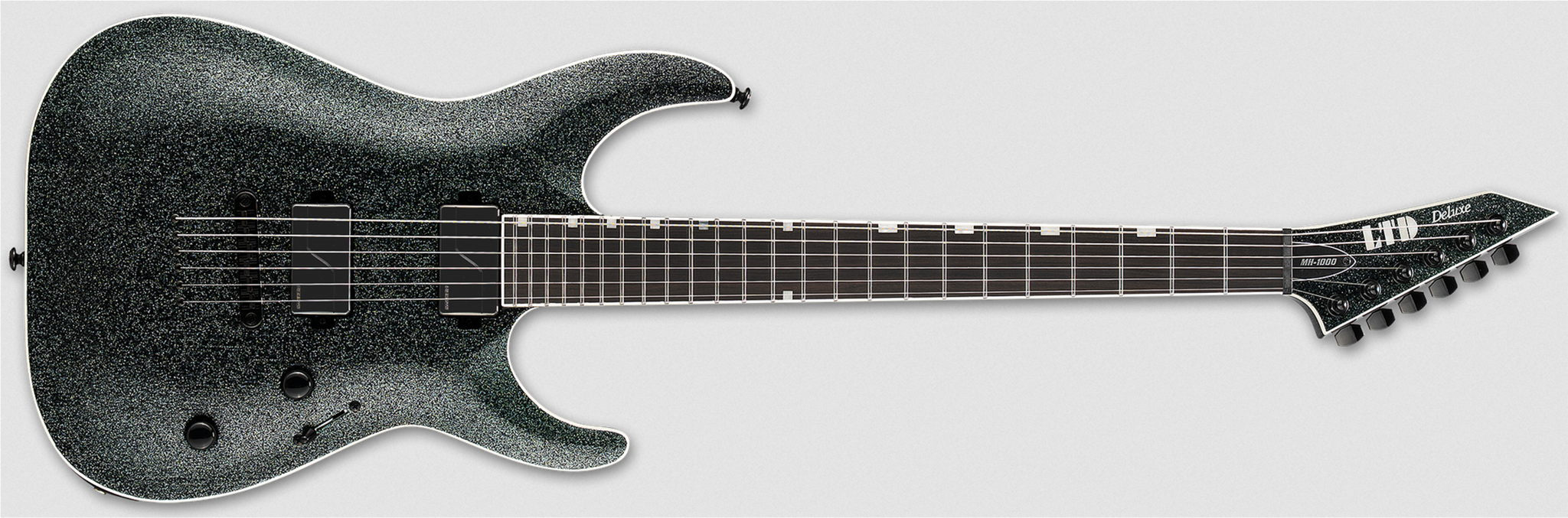 Designed for professional guitar players who require the versatile tones, smooth playability, and complete reliability for serious recording and touring needs, the LTD Deluxe MH-1000NT is a seriously heavy-duty machine for your most high-performance guitar playing. Built with set-thru construction at 25.5” scale, the MH-1000NT offers a mahogany body, a three-piece extra-thin U-shaped maple neck, and a Macassar ebony fingerboard with compound radius, 24 extra-jumbo stainless steel frets, offset block inlays, and a reversed matching-finish headstock. Components on this outstanding guitar include LTD locking tuners, a TonePros locking TOM-style bridge with string-thru-body, and a set of direct-mounted Fishman Fluence Modern 3-Voice Humbucker pickups — ceramic in the bridge, and alnico in the neck — with Black Nickel covers. Push-pull controls allow for selection of these innovative pickups’ multiple voices.