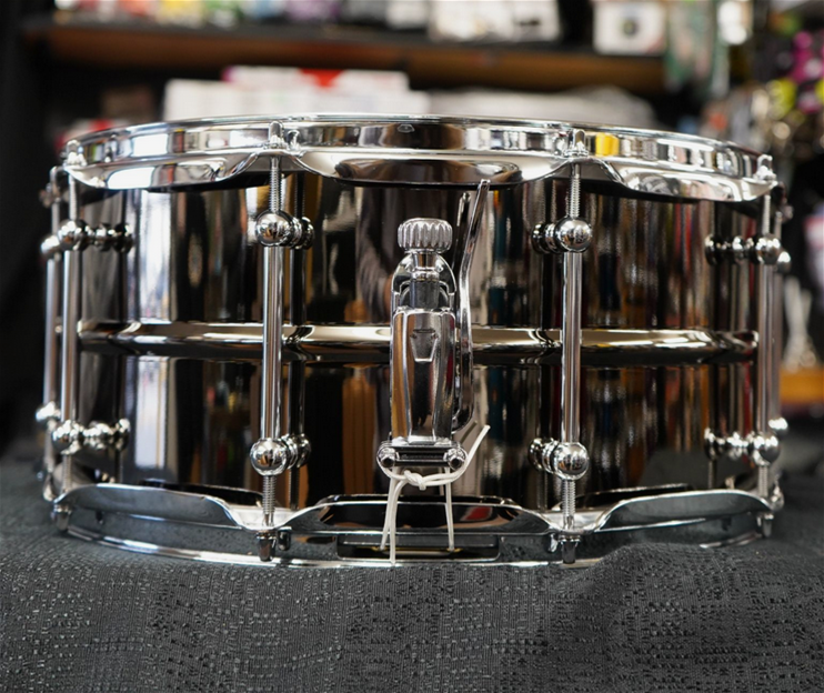 he Ludwig 14x6.5 Universal Black Brass Snare Drum (LU6514C) features a 1mm Beaded Black Nickel-Plated Brass Shell, 45 Degree Bearing Edges, 10 Tube Lugs, 2.3mm Triple-Flange Hoops, P88I Throw-Off, P35 Butt Plate, 20-Strand Brass Coil Snare Wires, Remo Coated UT Drumhead with Ludwig Logo, Chrome Hardware, and Ludwig Universal Model Badge.